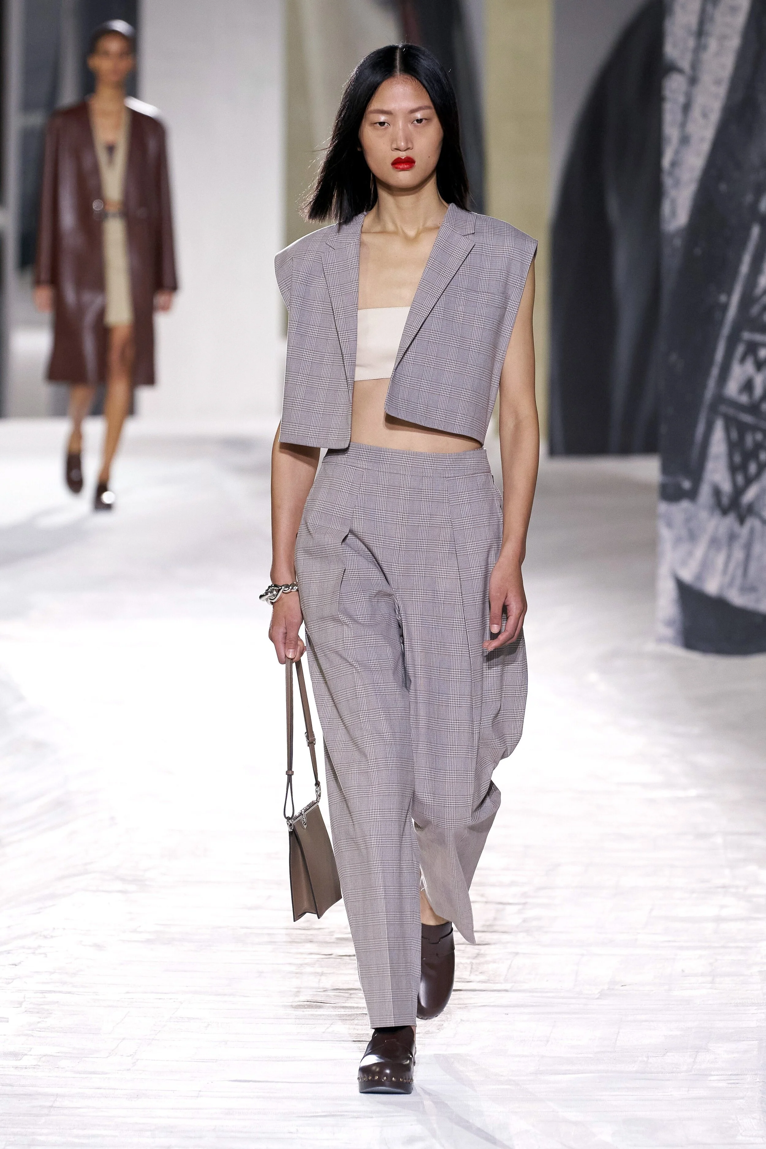 This season, designers rethought simple bras in every style imaginable. Paco Rabanne made a case for classic French girl styling, pairing a lacy black bra with flared jeans and a leather coat. Chanel, Jacquemus, and Hermes made feminine bras feel fresh when paired with tailored trousers and feminine midis. At Versace, bras peeked out from underneath low-cut dresses and barely-buttoned tops.